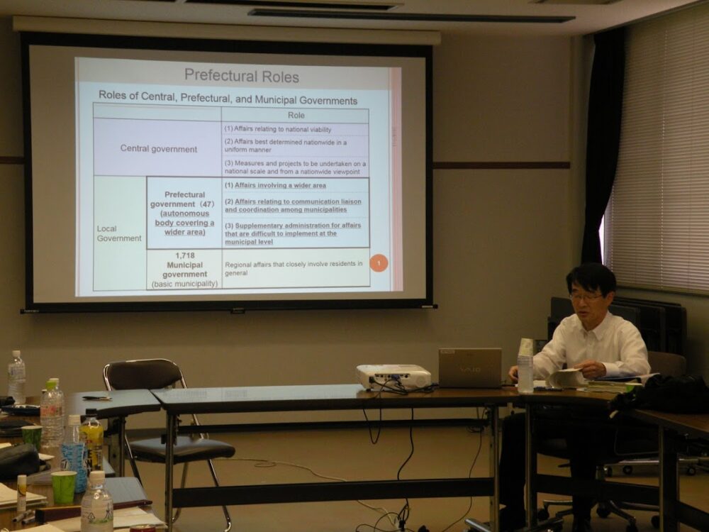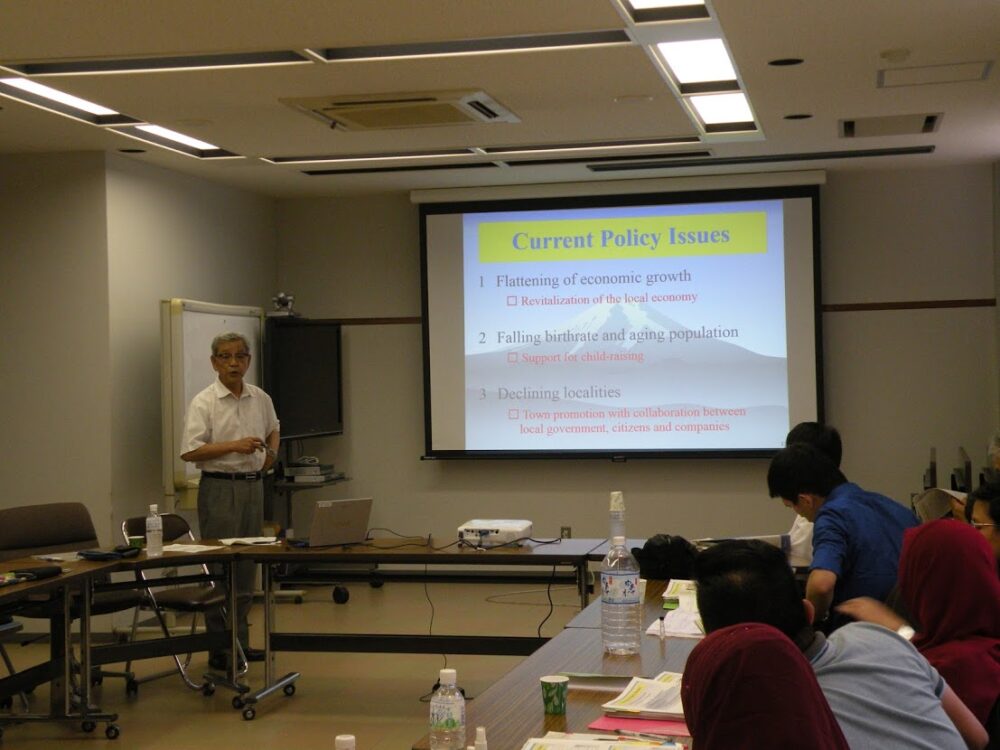 Prof. Tezuka first showed data of revenue and expenditure of local government. Then, he gave detailed explanation of local government’s tax system and how it was used for development of local areas. Based on the information given by the Professor, solutions for increasing financial resources were also discussed.