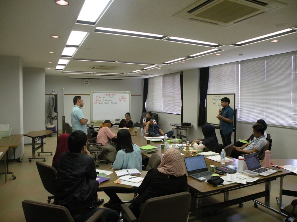 Day 14: July 15, 2018 The session “Examination-2 and Review 2” was held at the JICA training room. In the evening, the second-half of facilitators, Rukayya Abdurahma Darul (Kai), and Ronnie Landicho Arap, Jr. (RR), arrived at Hiroshima International Plaza (HIP) where trainees stayed during the training.