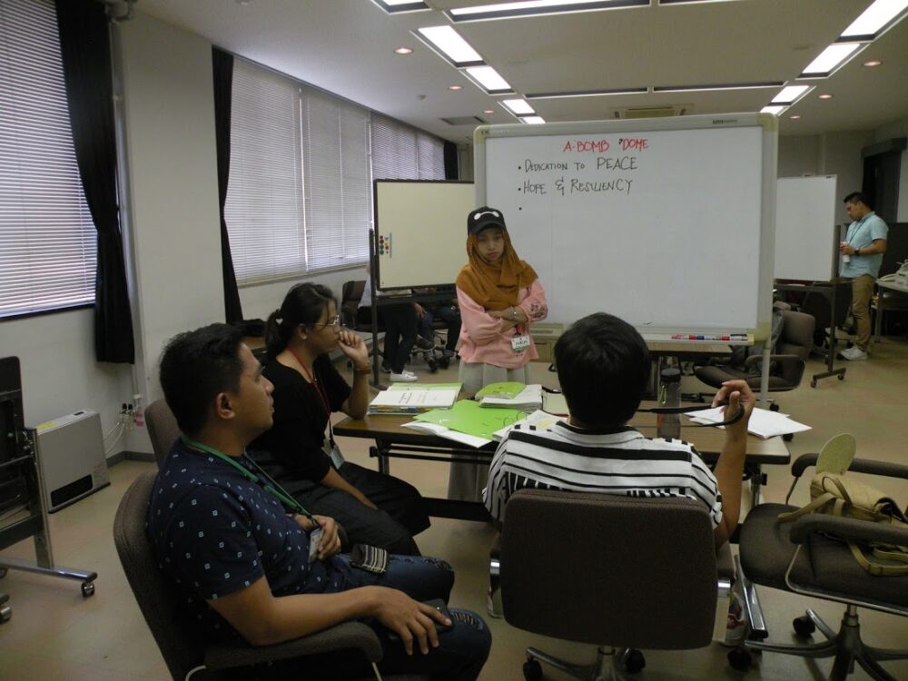 Mr. Kawagoe, Hiroshima Prefectural Peace Promotion Project Team, HPG also participated in the lecture. He is the primary contact of HPG and jointly have made plans and helped organizing this Training. After the lecture, Mr. Kawagoe supported the review session as well.