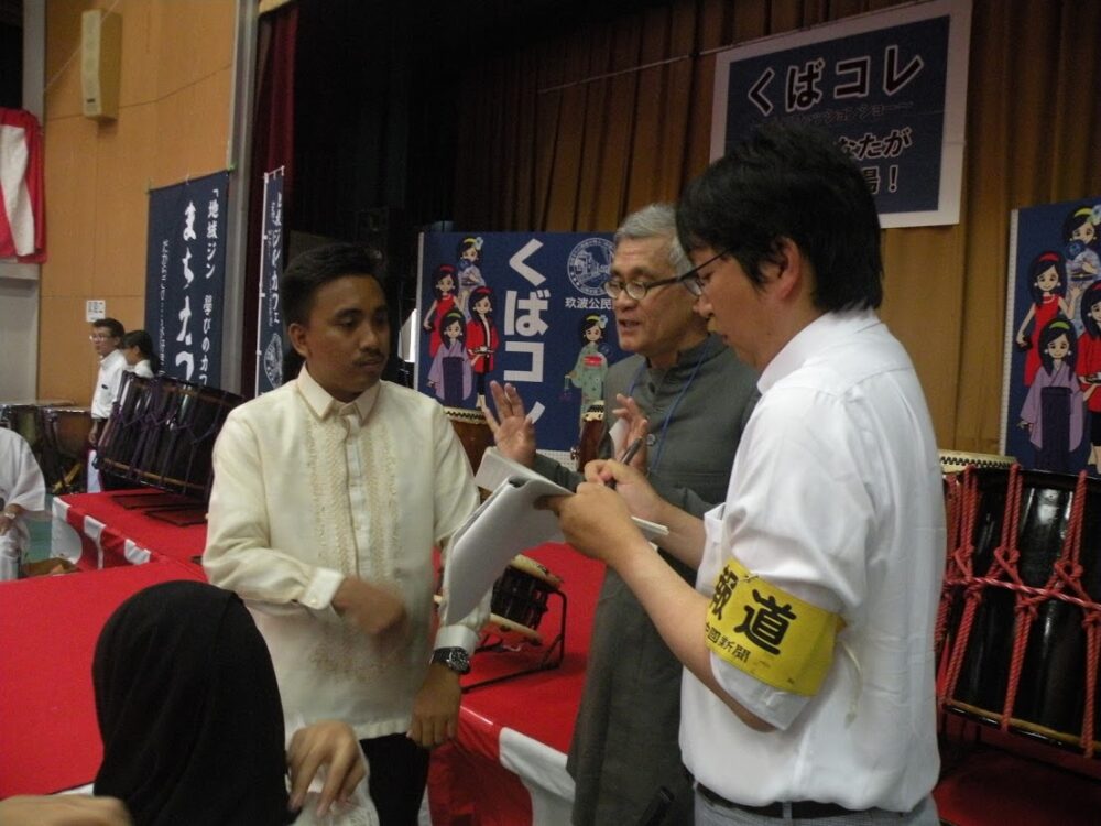 A trainee being interviwed by a reporter from Chugoku-Shinbun newspaper