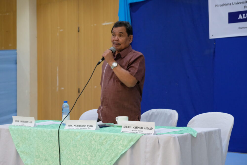 Of all 66 alumni, 33 participated in the Meeting. Those HiPeC-BM Alumni had an honor to have the attendance of Hon. Mohagher Iqbal, Chairman of the MILF Peace Implementing Panel. At the meeting, individual project/work reports were presented by three voluntary members of the alumni, which were followed by group discussions. The Project Manager of the HiPeC-BM, Prof. Yoshida, attended the meeting through a video message.
