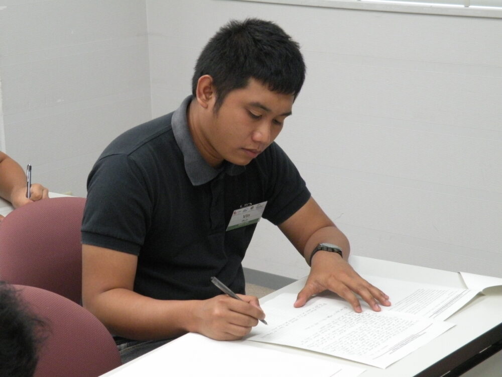 Since July 18 is a holiday in Japan and no bus commuting to Hiroshima University, trainees take their exam at a Seminar room in Hiroshima International Plaza.