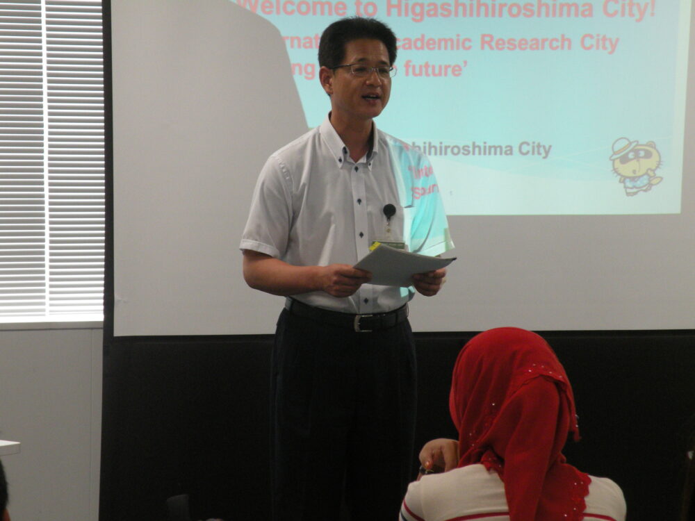 - First trainees listen to a lecture about Higashihiroshima City.