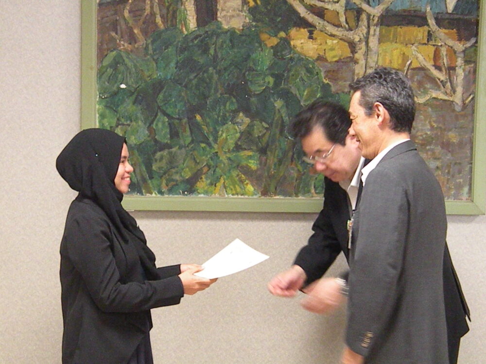 After the presentation Closing Ceremony is held and trainees are given two certificates: one from JICA and one from Hiroshima University and Hiroshima Prefecture.