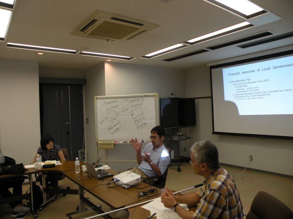 Prof. Tezuka first showed data of revenue and expenditure of local government. Then, he gave detailed explanation of local government’s tax system and how it was used for development of local areas. Based on the information given by the Professor, solutions for increasing financial resources were also discussed.