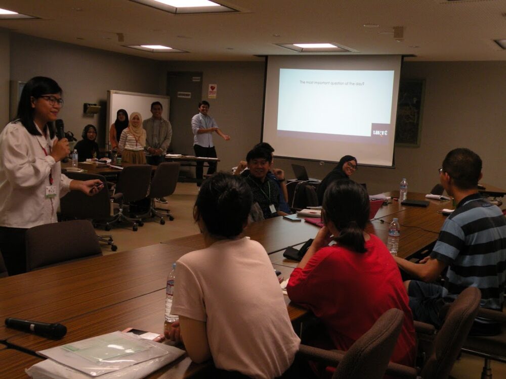 The rehearsal was held on the day before the final presentation. We invited Mr. Shinjiro Kawagoe from Hiroshima Prefectural Government (HPG) and Ms. Rose Adams, a intern at HPG from Stanford University, to ask for feedback. Some graduate students were also invited. Trainees received valuable advice from the participants including Prof. Yoshida and facilitators. After the rehearsal, each group had a consultation with Prof. Yoshida. After the session, trainees worked very hard to improve their presentation and prepared for their final presentation.