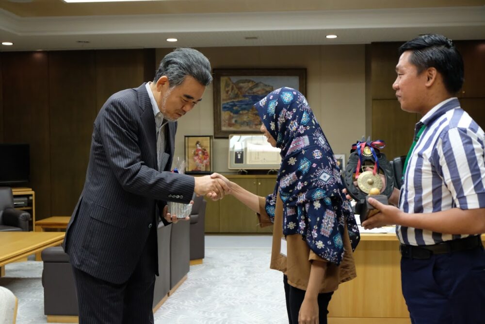 After the discussion, trainees paid a courtesy call on Professor Atsuhiro Taki, Dean of the Graduate School of Social Sciences, Hiroshima University.